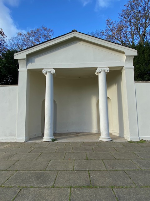 Adjacent to the church is Canons Park, the last of the open spaces to be seen on this route. Canons Park is largely located on the site of the magnificent early 18th-century country house Canons, built between 1713 and 1725 by James Brydges, 1st Duke of Chandos. A few years after his death, the house was demolished. A large portion of the original gardens of James Brydges’ house now form the public pleasure gardens of Canons Park. The modern park includes the George V Memorial Gardens and a folly known as ‘the Temple’.