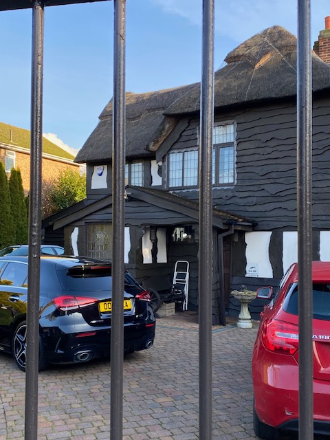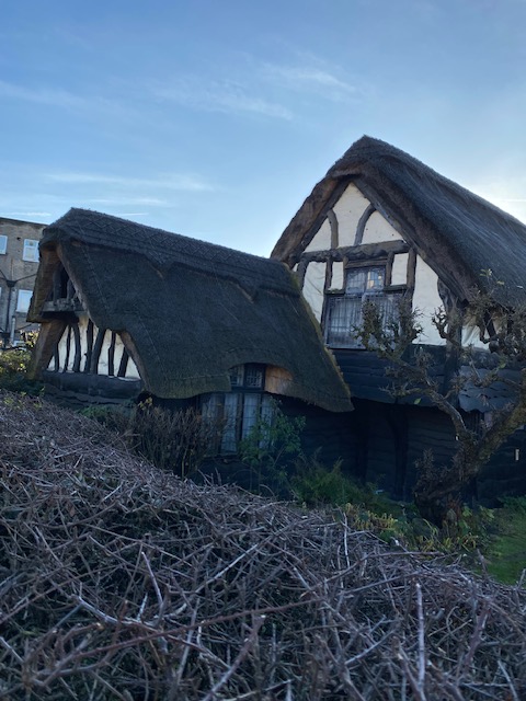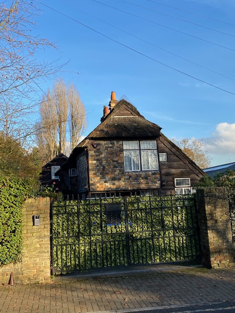 Ernest Trobridge built an estate of thatched houses in Kingsbury over a hundred years ago. Walk from the bus stop round to Slough Lane to get sight of those that exist to this day. Trobridge had moved to Kingsbury in 1915, and developed his ideas while growing food on a smallholding in Hay Lane, to feed his vegetarian family during the First World War. He had already bought a small field, at the corner of Kingsbury Road and Slough Lane, ready to build his houses. This is where you can see some, now Grade II listed buildings.
