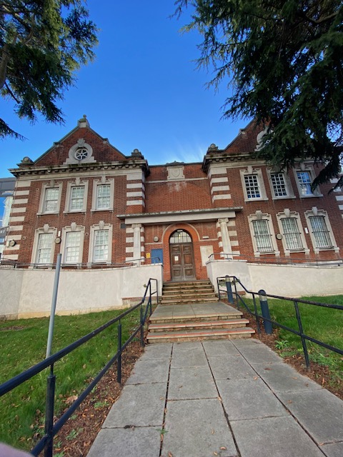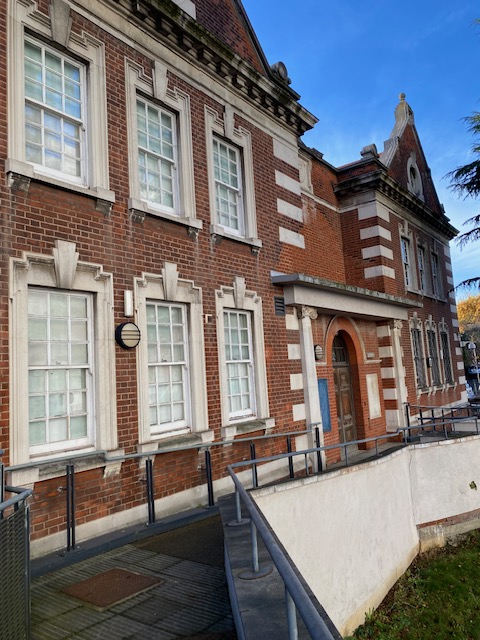 Hendon Magistrates Court is opposite the bus stop and was built in 1913. For many years, it was one of the quietest magistrates courts but since Covid, a backlog of cases needed to be heard and Wood Green Magistrates Court transferred many of its cases to Hendon, transforming it into a crown court, with a jury to hear the cases. Space within the courts is limited and many of the rooms have had to be converted to jury deliberation areas.