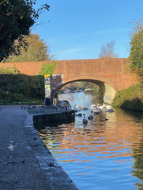 The bridge was built in the 19th century and is over the Grand Union Canal at the Paddington branch. There’s a good towpath alongside the canal and with a preponderance of swans swimming, it makes for a lovely walk.