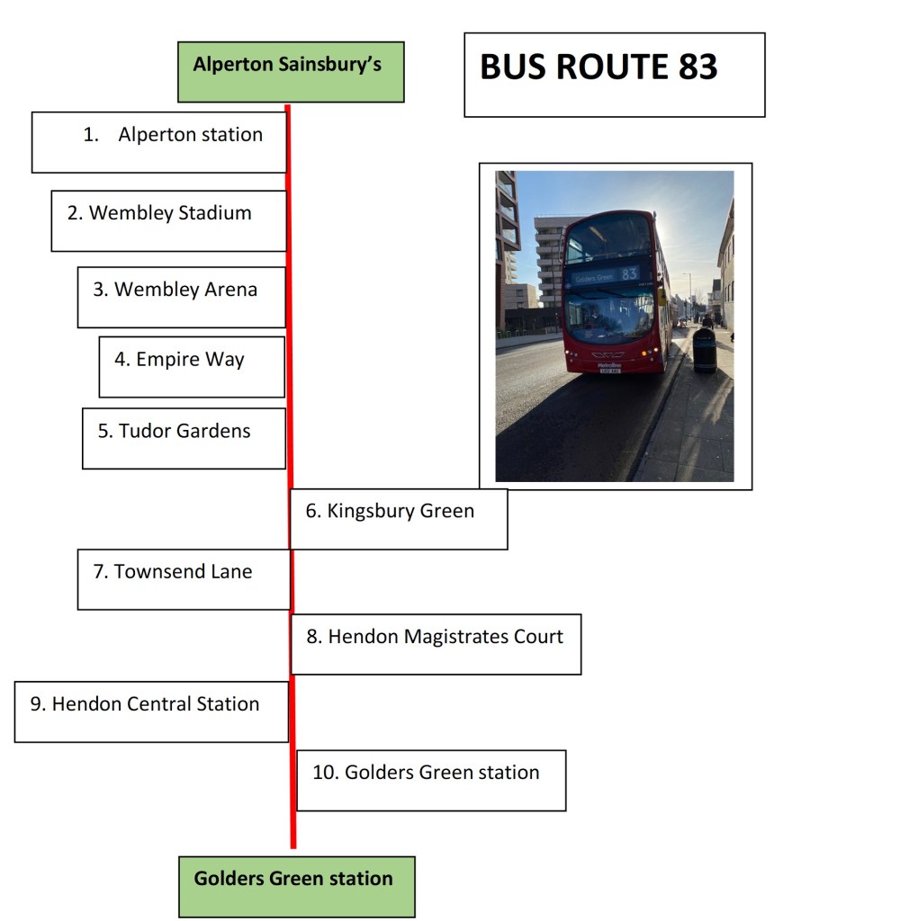Near both bus stops are interesting buildings with a history of theatre, cinema and music halls. Opposite Hendon Central station is what was the Ambassadors Cinema, which opened its doors in 1932. It was equipped for live variety shows and its facilities included a café and a Compton theatre organ. It was subsequently taken over by Gaumont and Classic cinemas until in the early 21st century, it was turned into a health centre and gym.