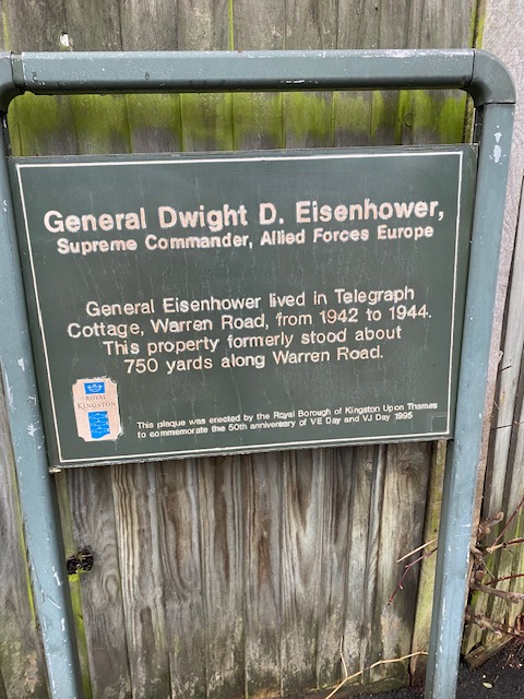The second plaque is to commemorate that General Dwight D Eisenhower lived in Warren Road, Kingston from 1942 to 1944 and the plaque sits on the corner of Kingston Hill and Warren Road. It was from here that he made the decision to launch the D-Day campaign and his residency was a heavily guarded secret, enabling him to enjoy some respite during these arduous times.