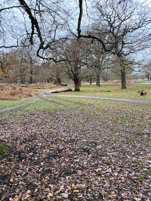 Round the corner is one of the entrances to Richmond Park, Robin Hood Gate. The name of Robin Hood has long been associated with the Kingston Vale area, with the name of the gate appearing in records from at least 1785. The association with Robin Hood is thought to have arisen from the Robin Hood plays and the May Day Games put on in Richmond Park for the entertainment of Henry VIII. Richmond Park is vast, with hundreds of deer roaming freely throughout. In early winter, it’s the culling season for female deer (male deer in February) so taking dogs at this time is not advised.