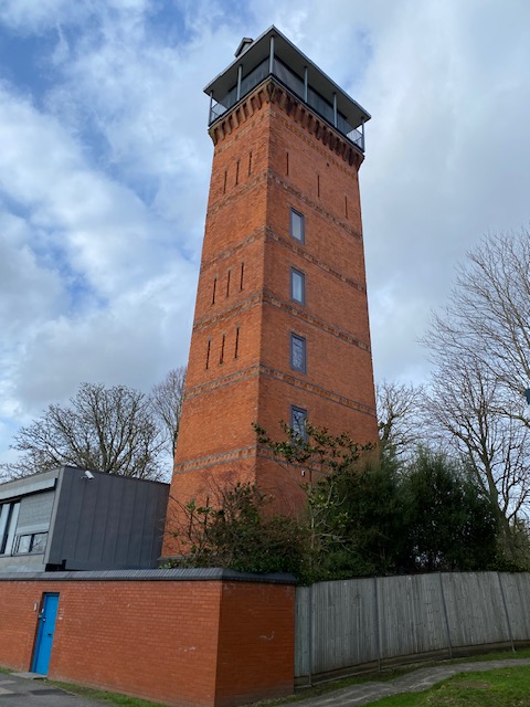 There are two water towers in Shooters Hill. The more famous and distinctive one is covered in scaffolding at present (January 2024) but the second one can be easily seen. It was originally built in the 1890s to supply water to the ‘Brook Fever hospital’, which was demolished in the 1990s, to be replaced by a housing development. The tower consists of a plain brick pillar ornamented with bands of terracotta tiles and windows like arrow slits. It is not listed, but it was cleaned, repointed and underpinned for conversion into a family home.