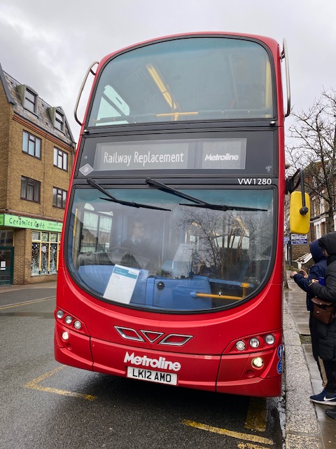 Every Wednesday at 11.17 precisely, a Rail Replacement bus leaves West Ealing station at Argyle Road bus stop, and travels to West Ruislip station.