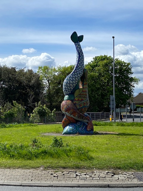 On the way back to the bus stop, there’s a cute mosaic sculpture in the middle of the roundabout. It’s The De Luci Fish sculpture and was created by artist Gary Drostle – he is the one who also made the Thames Barge Mural, shown earlier. The design was inspired by the old town coat of arms, which was adopted from the family arms of Richard de Luci. The aim of this piece was to create a celebration of the town that looked back at its long history and looked forward to its new focus as a riverside town.