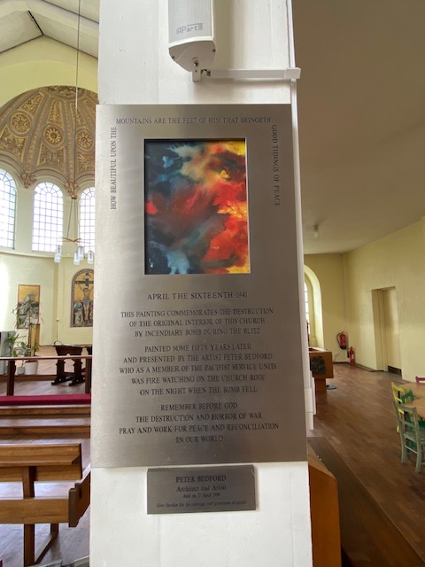 We then walked round to Postman’s Park where we initially called into St Botolph’s without Aldersgate, another church dedicated to the saint. This church escaped the Great Fire of London with only minor damage but having become unsafe due to wear and tear, it was demolished and rebuilt in its present form in the 1780s. Inside the church is the only 18th century stained glass window in the City of London – a depiction of the Agony of the Garden. The organ dates back to 1788.