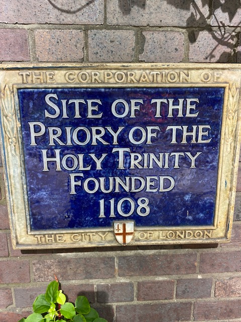 We visited the beautiful St Botolph without Aldgate church from this bus stop. St Botolph was an early East Anglian saint who built a monastery in the 7th century, probably in Suffolk. This survived until the Vikings invaded. His remains were dug up and were to be divided into 3 with the head to be taken to Ely, the torso to Thorney and the remainder to Westminster Abbey. The relics were brought to London through the four city gates at Aldersgate, Bishopsgate, Aldgate and Billingsgate. The churches at each of these gates were named after him and all still exist apart from Billingsgate. This church at Aldgate was connected to the Holy Trinity Priory, recently founded by Queen Mathilda, wife of Henry I.