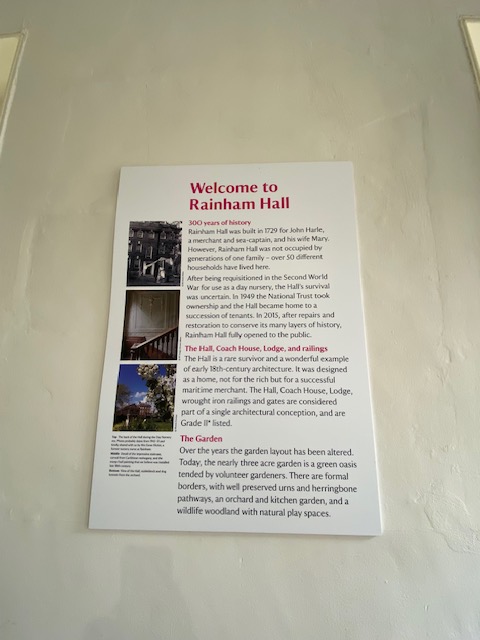 From here, it’s a two minute walk to Rainham Hall, now owned and managed by National Trust. This lovely house was built in 1729 for John Harle and is a rare survivor and a great example of Queen Anne style architecture. It was designed as a home, for a merchant, to be lived in and used. There have been many inhabitants at Rainham Hall since 1729, including solicitors, artists, children in a day nursery, a cycling vicar and architectural historians. Many of the original features of the house remain, including trompe-l’œil frescoes on the walls and Delft tiles in the fireplaces.