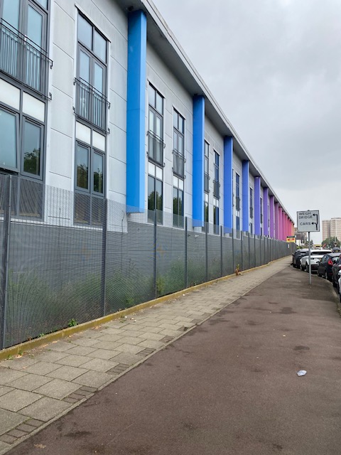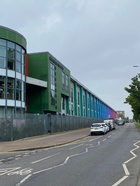 As you make your way back to the bus stop, you’ll see a colourful building which is the Cornelius UK Business Centre. The building has been painted in the colours of the rainbow and is quite striking as you get near to it.