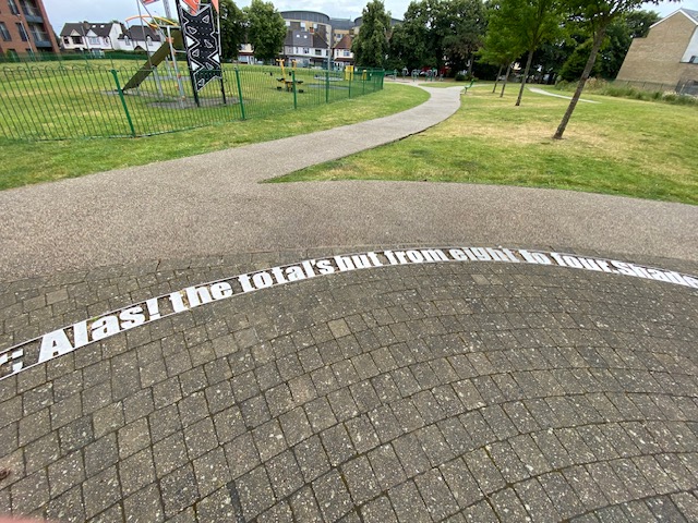 There are a lot of outdoor places to see on this route so it really would be best to go on a balmy day, not like this rainy one. But in between the showers, it’s still possible to appreciate Jubilee park which has a wildflower meadow in the middle. There are also words from The Shortness of Life poem by Francis Quarles as well as a dial – which is referred to in the poem.