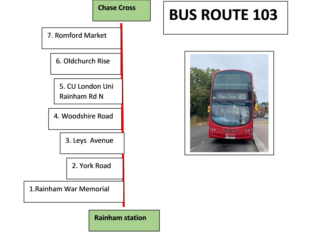 The bus stop is opposite Dagenham Civic Centre. A large part of the building is now a campus for Coventry University and on the corner is an old art deco building which looks to be abandoned but could be part of the civic centre. It wasn’t open on the day of my visit so it’s difficult to say. Next to this building is Central Park, Dagenham which has a very lovely small Peace and Memorial Garden with some cheerful benches and pretty trees.
