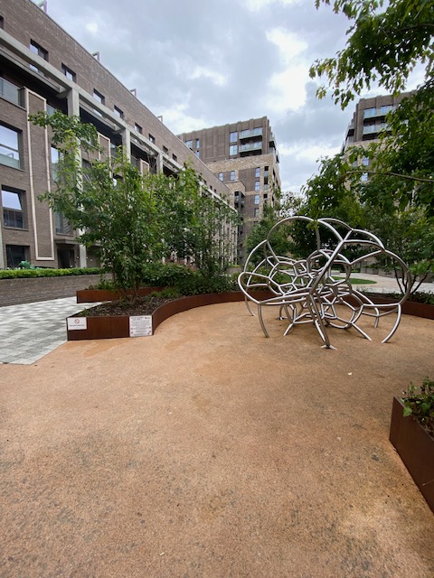 Final stop on this route is at the station where just outside is Robert, the Red Steam Train. This locomotive was built in 1933 to be used by the Lamport Ironstone Mines Railway in Northamptonshire. After the railway closed in 1969, Robert worked on a number of heritage railways until it was bought by London Docklands Development Corp as an example of a 20th century industrial steam locomotive. It was placed here in Stratford in 2011 to commemorate the area’s long association with railways – which started in 1839, with the first station opening here by Eastern Counties Railway.