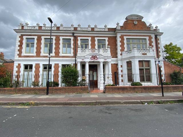 Around the corner from this spot is The Red House, a grade II listed building. It is St Anthony’s Catholic Club – known as The Red House because of its red brick façade. It began life in the 18th century as the home of a Dutch merchant and was extensively remodelled in the 1880s. It was later the home of a manufacturer of early trade union banners, after which it served as a Catholic club until its recent conversion back to residential use. There’s an interesting plaque on the front of the house that looks like two fishermen in a rowing boat – this might be connected to the Dutch merchant, though it’s not obvious.