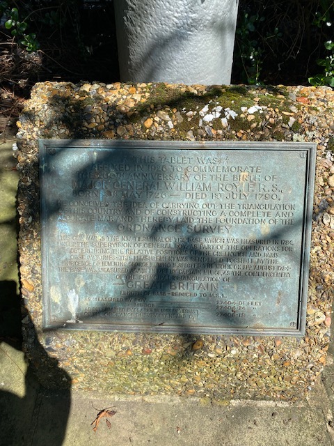 Just a couple of stops from Heathrow Central bus station is Nene Road and a short walk from the stop is William Roy’s (baseline) north west marker. If you didn’t know it was there, however, I doubt you would ever find it! Who was he and what did he do to merit a marker? The origins of Ordnance Survey go back to a triangulation survey carried out for King George III and The Royal Society between 1784 and 1790. The survey, carried out by Major General William Roy, determined the relative positions of the Greenwich Observatory and L’Observatoire de Paris, and measured the distance between the two observatories. Roy’s first action was to measure a survey base-line across Hounslow Heath during the summer of 1784. The marker is a cannon and has a plaque explaining the significance of the site and the importance of the work that was carried out by Roy.
