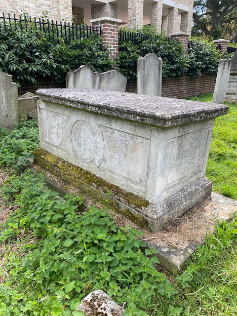 This was a bit of a find so be prepared to enjoy the delights near this stop. Head immediately for the mediaeval churchyard in which lie the ruins of the original church building. The churchyard is usually open only by appointment owing to current restoration work but if you’re lucky, you can have a quick look – if not, you can see the ruined building from the street. Buried here is Edmond Halley (1656–1742), who from 1720 was England’s second Astronomer Royal and is best known for computing the orbit of Halley’s Comet.