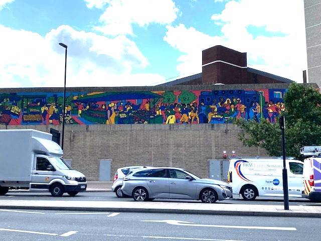 Before getting on the bus, take a look at the mural entitled “Lewisham” which was created by artist Gaurab Thakali, to celebrate Lewisham being London Borough of Culture 2022. “Lewisham” depicts the vibrant mix of cultures and everyday living in Lewisham market, and celebrates the borough’s buzzing sound system culture and jazz scene.