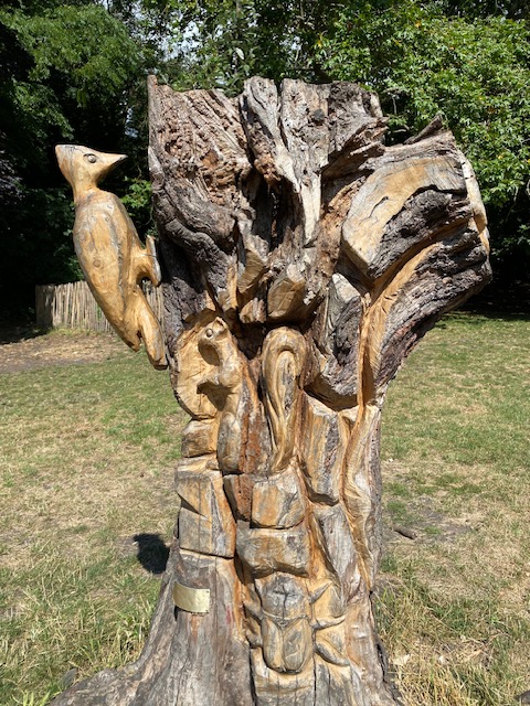 The gardens surrounding the house are lovely. They are quite extensive and form part of Westcombe Park conservation area. It’s thought that some of the trees may even have been planted by the Angersteins (owners of Woodlands House next door). In the centre of the garden is a wood carving, formed from a dead tree trunk. Animals carved are a woodpecker, squirrel and owl.