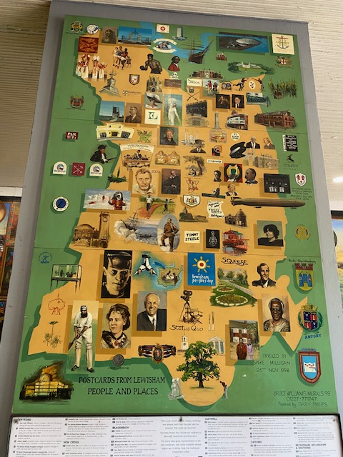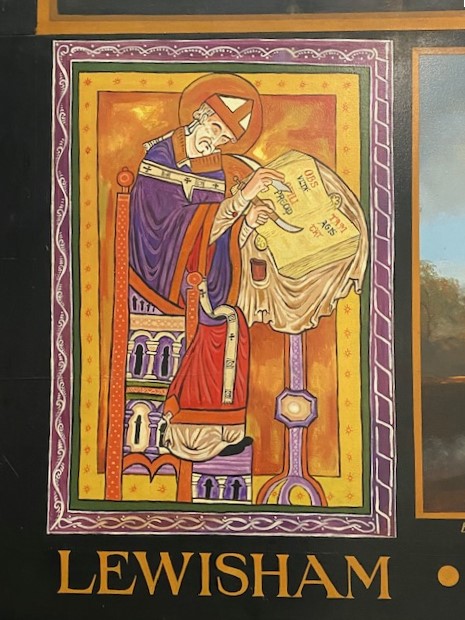 This route starts at the same place as others (see 54, 75, 89) but there are always things to see that are new, or previously overlooked. Take for example, at one of the entrances to Lewisham Shopping Centre, there are a series of images portraying Lewisham and its surroundings over the years. Take a look at St Dunstan, an abbot of Glastonbury who had helped King Edgar to the throne. He had been sheltered by the monks at St Peter’s Abbey in Belgium and as a reward, Edgar bestowed the Manor of Lewisham upon the abbey.