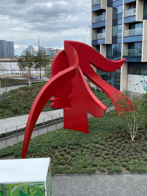 Yet more things to see – there’s a sculpture entitled Head in the Wind by British artist, Allen Jones, designed to be viewed from above and below as well as being interactive. It’s a vibrant, painted-steel piece that was commissioned for and inspired by The Tide.