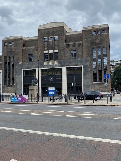 Along the main road, you’ll come across Poplar Public Baths. The original one opened in 1852, to provide public wash facilities for the East End’s poor as a result of the Baths and Washhouses Act 1846. The baths incorporated slipper and vapour baths as well as steam and shower baths. There was a public laundry containing 48 wooden washing tubs, drying equipment and ironing rooms. The Baths were rebuilt in 1933 and the larger pool was covered over to convert the building into a theatre with a seating capacity for 1,400 and incorporated a dance hall, cinema, exhibition room and sports hall for boxing and wrestling programmes.