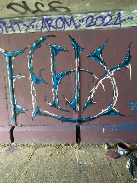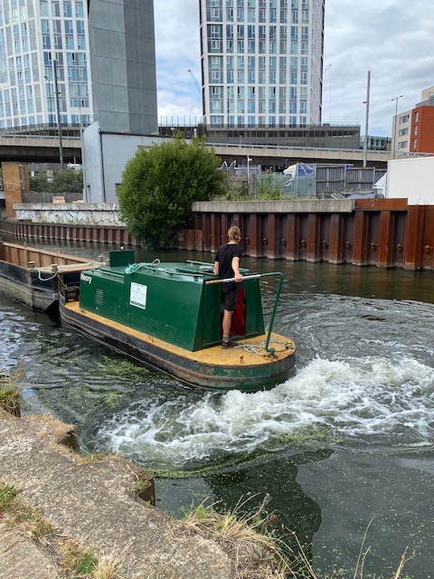 Final stop on this route is to see Bow Free Wharf. Walk along the canal walkway from the bus stop and you’ll come across a tunnel covered in graffiti or street art. On the day I was there, I was lucky enough to catch an artist at his work and although he didn’t want me to photograph him, he was happy for me to take a snapshot of his work.