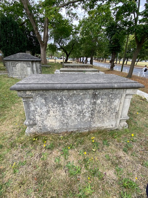 After Turner’s House and the Banksy mural, there is another artist to find, this time it’s Thomas Gainsborough. The artist’s grave is in the churchyard of St Anne’s church in Kew and in fact, his house is on the Green opposite the church. Gainsborough won fame for his landscapes and portraits and along with his major rival, Joshua Reynolds, he is considered one of the most important British artists of the second half of the 18th century. He moved to London in 1774 and died here in 1788. He is interred in this churchyard and it was his express wish to be buried near his friend Joshua Kirby. At a later date, his wife and nephew Gainsborough Dupont were interred with him. It is thought that this nephew was the boy in his uncle’s The Blue Boy painting. Also in the churchyard is buried the German artist Johan Zoffany, who had lived in nearby Chiswick.