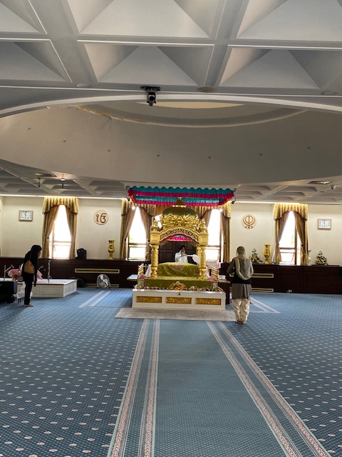 An easy place to start – cross over the road and take a look at Gurdwara Sri Guru Singh Sabha that provides space within which the Sikh community can congregate and worship in accordance with the faith. It’s possible to take a look round the inside, as long as you wear appropriate clothing and take off your shoes. The people are incredibly welcoming, happy for you to walk around and even partake of some food and tea. Upstairs is the large prayer hall and there are separate, smaller rooms for praying. I was given an introductory talk about Sikhism and its derivation, from one of the delightful volunteers.