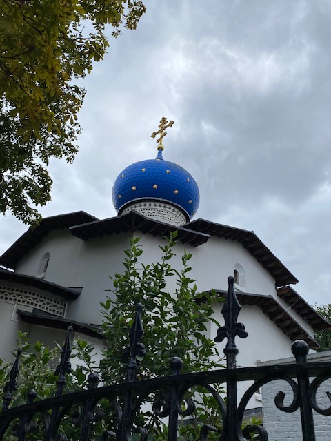 Walk around the corner for a few minutes and find yourself at the Russian Orthodox Church in Harvard Road. You can see the blue star-studded dome from the street and there is a granite cross to commemorate the Royal Martyrs (the Russian Royal Family executed by the communist revolutionaries) just inside the gate. Its full name is The Cathedral of the Dormition of the Mother of God and the Royal Martyrs, and it opened in 1999. There are times when it’s possible to go inside and sometimes you can be lucky to find a dignitary who will show you around.