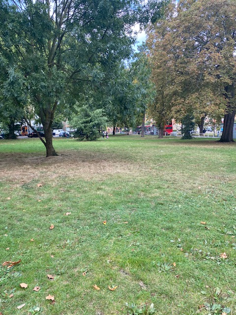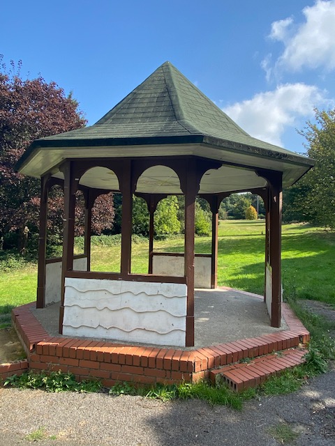 The bus stops just near Hanger Hill Park. This very pleasant open space has undulating ground and it’s thought these were air-raid shelters during World War 2. There are also natural springs and native oak trees, which grow well on the clay soils. In the middle of the park is a summerhouse, though it’s not obvious what it’s used for.