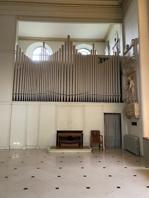 Round the corner from here is St John’s Church itself. The old Marylebone Parish Vestry bought a plot of land in 1808, to use as a burial ground. They also built a chapel – the present St John’s Wood Church – to serve the burial ground. The church is a simple building in Regency style, with a portico of four unfluted columns with Ionic capitals. The interior is very plainly decorated in white and gold and the box pews are original. In the 1990s, the old Victorian woodwork was replaced with Italian marble, which gives the church a very bright air.
