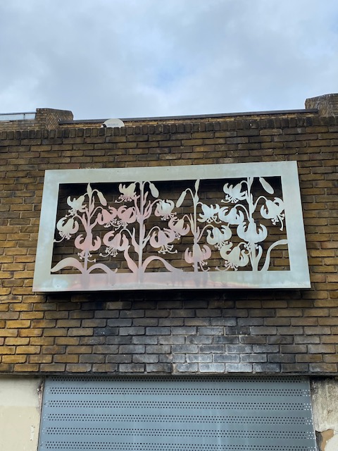 On a fairly unprepossessing building in Standon Walk is a series of murals entitled Holly. It’s one of seven on the theme of nature and it’s accompanied by the words of a poem on the same theme by Kathleen Raine. The panels are in order of the seasons, starting with spring daffodils on the left and ending with holly on the right. According to a local resident, the murals used to be lit up at night, creating a magical effect, but this has long gone, so it’s best to see them in daylight.