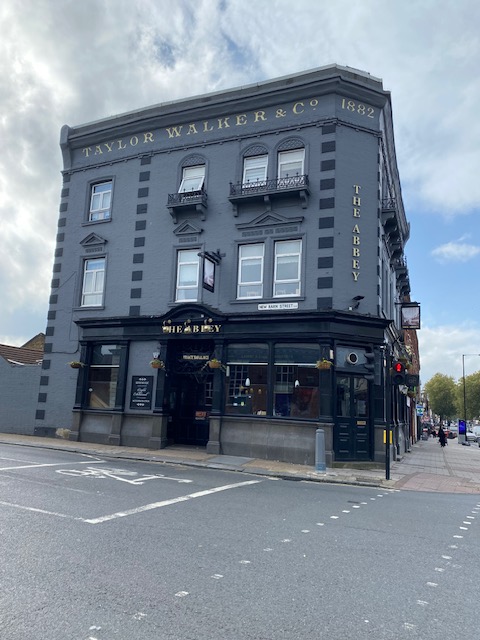 Near the bus stop is an interesting pub, the Abbey Arms. This pub was originally built in 1742 and named at that time the ‘Crown’. It was re-built in its present form in 1882 and renamed The Abbey. It was originally a coaching inn, as were so many in those days. There’s a wrought iron sign over one of the entrances which says Private Bar and Jugs. Some customers brought their own jugs to be filled and taken away. This was a common practice for women who did not want to drink in the bar to take away a jug of beer and drink it at home, particularly as it was cheaper when sold by the jug.