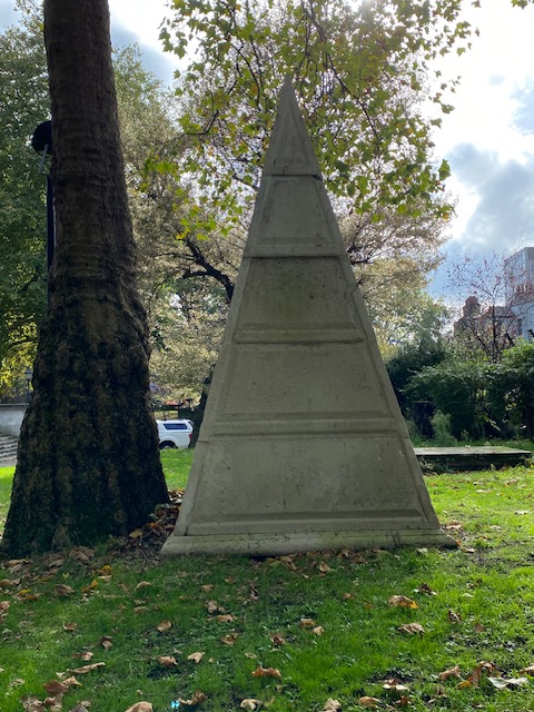 After the churchyard closed to burials, it was converted to public gardens which were laid out by the Met Public Gardens Association’s landscape gardener Fanny Wilkinson. She retained the iconic stone pyramid by Hawksmoor, dating from 1730 which bears the inscription “The wisdom of Solomon”. This is grade II listed while the church itself is grade I.
