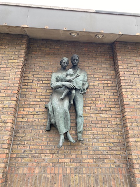 Walk round to St Bartholomew’s Church and you’ll see a lovely statue mounted on the exterior wall. The Family statue is by sculptor John Bridgeman a family group, made up of mother, father and child.