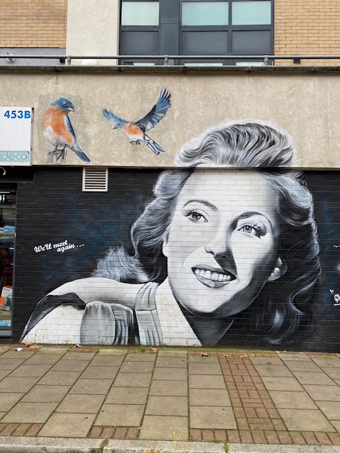 Another few minutes’ walk away is a large mural of the Forces Sweetheart, Dame Vera Lynn. The mural is in Latimer Avenue, the street where she was born. She died at the age of 103 and this mural was painted in her honour and unveiled by her daughter.