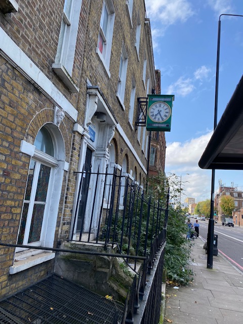 On the way back to the bus stop, take a look at the East End Maternity Hospital, an early 19th century building with its grade II listed wrought iron railings, sash windows and clock. Over the years the home went by various names: East-End Mothers’ Home; East End Mothers’ Lying-In Home; East End Maternity Hospital. The building was damaged in both wars but seems to have suffered no casualties. It was evacuated out of London in WW2. It was taken over by the NHS in 1948 and closed its doors in 1968.