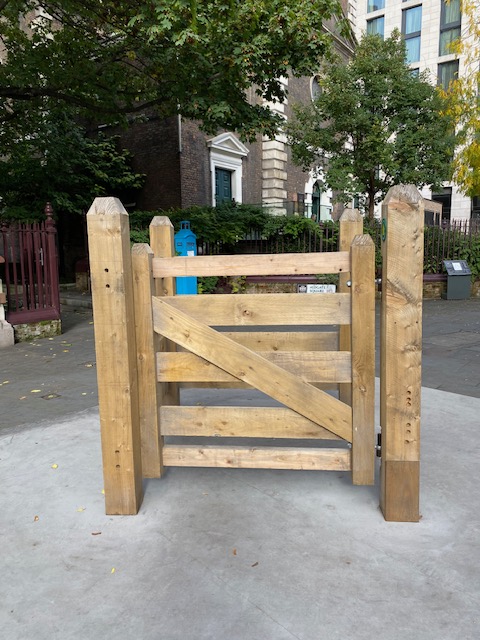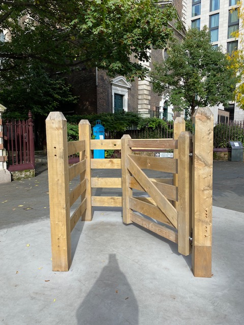 This is the final stop on the route and the area has been visited before on a variety of routes including 100. Outside St Botolph without Aldgate church is one of a number of sculptures featured in Sculpture in the City art trail. This is Kissing Gate by artist Maya Rose Edwards and is an interactive installation to invite romantic interaction between strangers. It’s never fully open or closed so it is an encounter with no right of way, in Edwards’ words “A hyphen, not a period (full stop).”