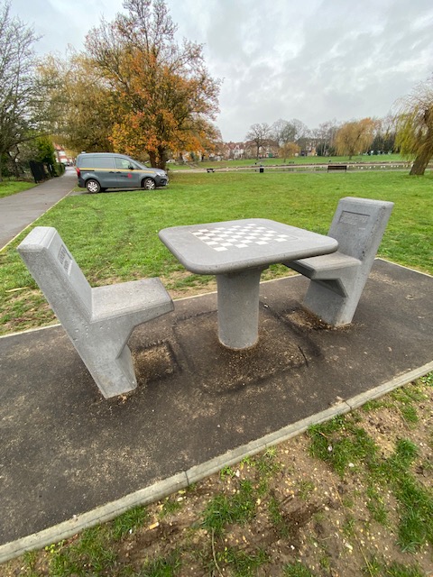 Broomfield Park has some really lovely features and places to see. Near the entrance is a concrete table and chairs set, with the table having a chess or draughts board built in. A few metres away is the Palmers Greenery café, which on this particular day, was (wo)manned by two friendly ladies. On the walls surrounding the café are various murals of Canada Geese as well as a small mosaic mural that had been commissioned by the Palmers Green Action Team.