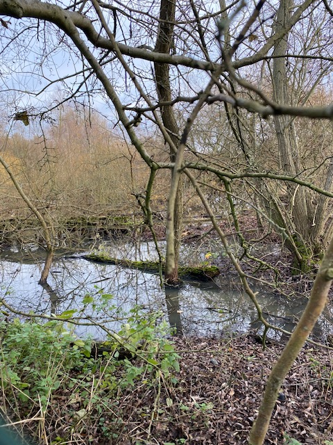 As its name suggests, the village is surrounded by water – the river Lea is close by and there are some very pleasant walks along the side of the river. If you amble over Cattlegate Access Bridge, you come to Knights Pits which is marshland inside Sewardstone Marsh. The area consists of two pits formed as a result of gravel extraction, a large wooded area and some grassland and scrub. It’s a breeding ground for several species of birds although in early December (the date of this visit), not so many stop by.