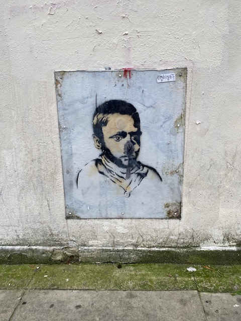 Final stop on this route is at Turnpike Lane station where there are numerous murals and street art. One such is Envision Peace, installed by US artist Shepard Fairey over an old Victorian billboard in 2012. Fairey was commissioned by Haringey Council and charity Sustrans, to help improve the streetscape. His solution was to craft a giant eye inside an old Victorian niche on a shop wall, with a stunning effect. Below this is a caricature of a horse by the renowned Spanish artist Francisco de Pájaro, also known as Art is Trash. On the wall next to the horse is another piece of art but there’s no signature to determine who was the artist.