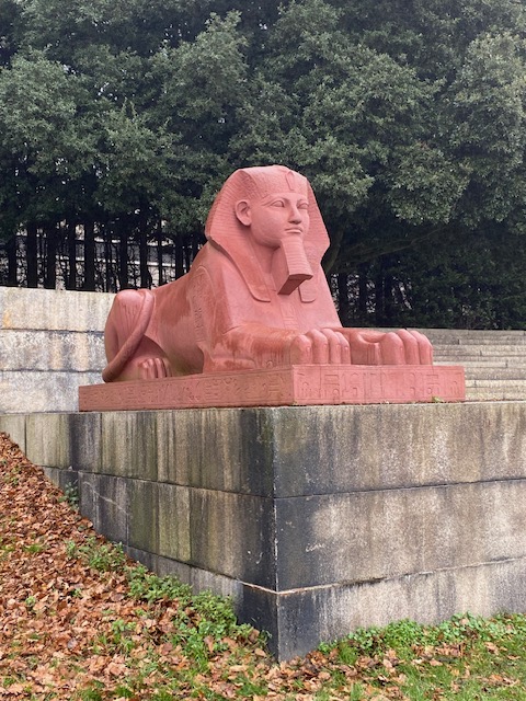 Go back up to the upper terrace and you’ll see the two sphinxes that were based on the red granite Great Sphinx of Tanis, held in the Musée du Louvre in Paris. They were repainted in terracotta red in 2016 – as they had been until the end of the 19th century.