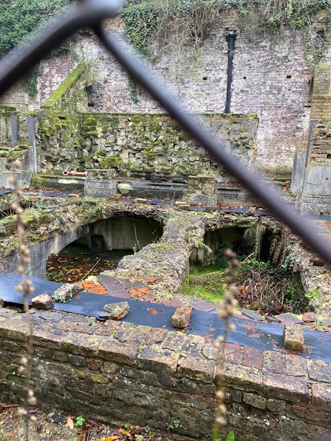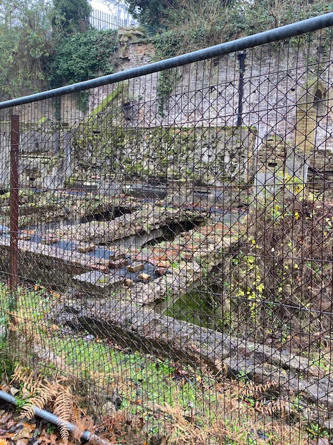 It’s possible to walk from the sphinxes to here or you could get on the bus and alight at this stop. Still inside the park is the Old Aquarium. It’s difficult to get a decent photo because of the fencing surrounding it but you can see what remains of it. After a fire in 1866, which destroyed the north nave of the Crystal Palace, a new public attraction was built – the largest marine aquarium of the time, designed by the first professional aquarist William Alford Lloyd. The Aquarium held 120,000 gallons of seawater which was brought by train from Brighton. Sadly although the aquarium was popular, it wasn’t a financial success and it was declared bankrupt in 1886.
