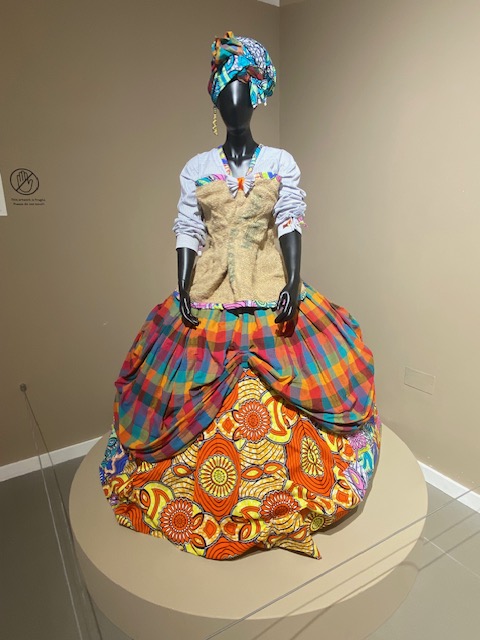 And so to the Migration Museum which until the end of March 2025, is situated inside Lewisham Shopping Centre. It will close as of that date to an, as yet unknown, new location. It’s a fantastic resource and exhibition space and there are very helpful staff to explain the history of migrants to the UK from all over the world. There is so much on display, that it’s worth allowing a decent amount of time to look around. Various interesting display items include a newspaper crinoline skirt – the artist Patricia Uter was inspired by a childhood memory from Jamaica where girls fashioned skirts from scrunched newspapers.