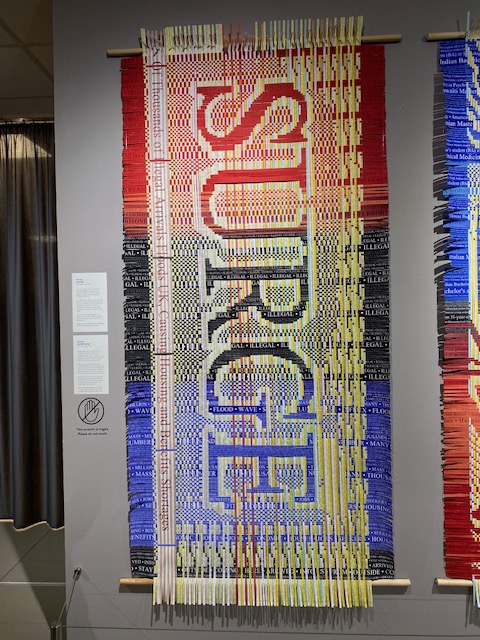 There are other installations at the museum such as “Worlds Apart”, a collection of suitcases piled on top of each other, to show a glimpse into the oft-difficult and challenging experience of moving overseas. There are also two woven paper tapestry exhibits “Surge” and “Overflow”, the former showing how the media’s extensive repetition of selective words contribute to the formation of negative public assumptions (about migrants/immigration). The latter highlights the wide range of identities that make up the fabric of immigrants living in the UK, disproving common public assumptions about immigrants’ identities, occupations and reasons for immigrating to the UK.