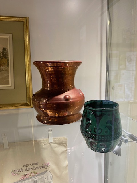 Head over to the museum where you will find a local history collection as well as art galleries on the upper floor. In the display areas you’ll see a life-like replica of a cobra, representing Cobra Boot Polish that used to be made locally. There are some Crotal Bells, the exact purpose of which are unknown but they tended to be found along ancient trackways. In another cabinet are some fine examples of Bushey Heath Pottery. Artist and sculptor Mrs Ida Perrin (1857-1953), with the help of talented potter and painter, Fred Passenger (1858-1938) decided they could make samples after the designs of the potter William De Morgan. A studio was kitted out in Bushey and the pottery was fired in a kiln in an outbuilding. Many of the vases were on loan to the museum and this is why you are able to see for yourself, these lovely pottery pieces.