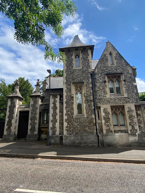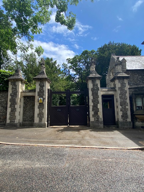 Now walk round to the Grange Academy. It’s an impressive array of buildings on the site of the former Bushey Manor. They were erected in 1928 to house the Royal Masonic School for Boys junior school. The school was designed to house 400 boarders in a line of four buildings connected by a cloister (covered walkway), across the quadrangle from the main building. The other buildings on the quadrangle were the dining hall and the teaching block and library.
