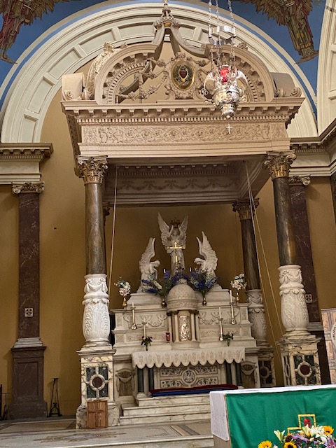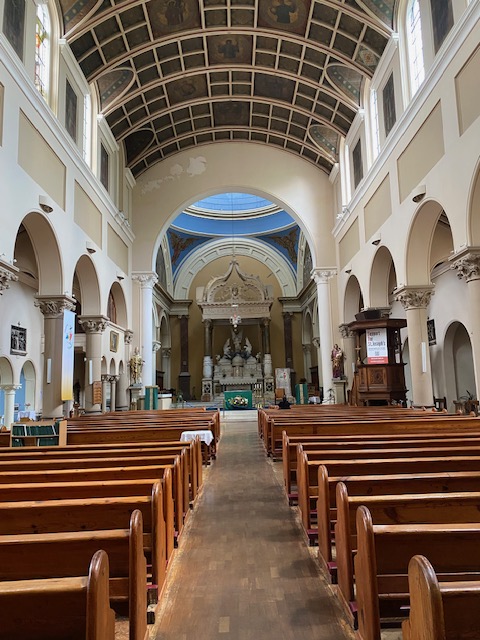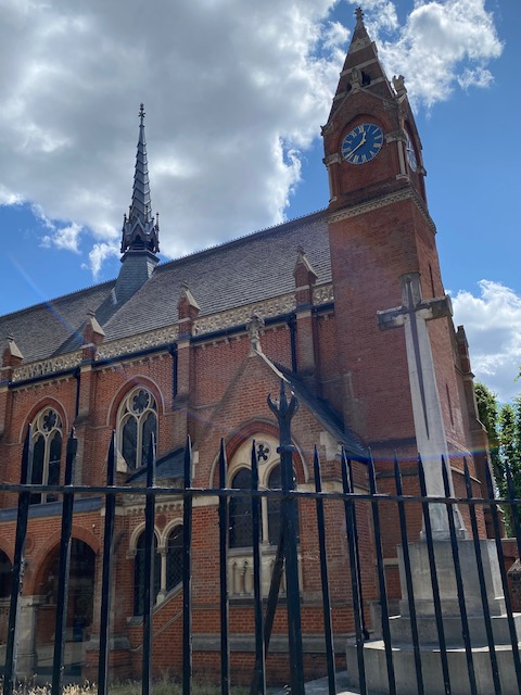 On your way back to the bus stop at Channing School, you’ll pass St Joseph’s Catholic church, built in the mid 1850s, at a time when Catholicism was still being treated with suspicion and resentment. One Father Ignatius Spencer, with financial help from his cousin, the fifth Earl of Spencer, bought the Old Black Dog Inn. He died before his work came to fruition, but the local Catholic community grew rapidly, and a chapel attached to the old pub was replaced by a purpose built church in 1861. Owing to a burden of debt outstanding on the church, it wasn’t until 1932 that the church was consecrated. The church is known for its rich interior, particularly the painted ceiling by Nathaniel Westlake. The church’s design is Italian Romanesque with a prominent dome, and the interior features wall paintings, side altars, and a baldacchino over the high altar.