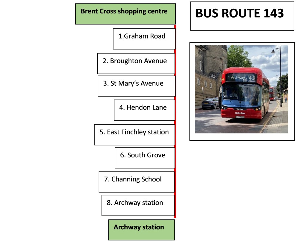 When you get off the bus at this stop, walk round the corner to Hendon Park. There you’ll immediately see twin panels that were installed as a celebration of HM Queen Elizabeth II’s Diamond Jubilee in 2012. After her death in September 2022 the panels were re-imagined as a celebration of Queen Elizabeth II’s life and reign.