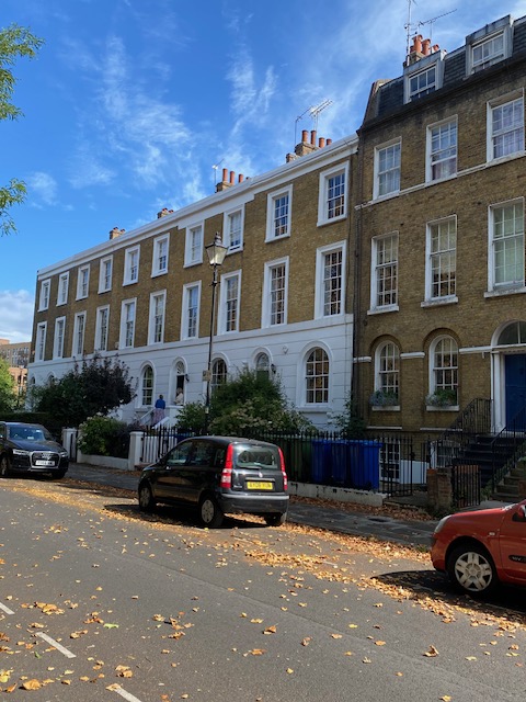 There’s another interesting street here called Liverpool Grove. It’s a notable surviving example of social housing that began in the 1890s with Octavia Hill as benefactress. The architecture lends itself to a Garden City suburban character with the housing typically consisting of two-storey terraced cottages and three-storey tenements.